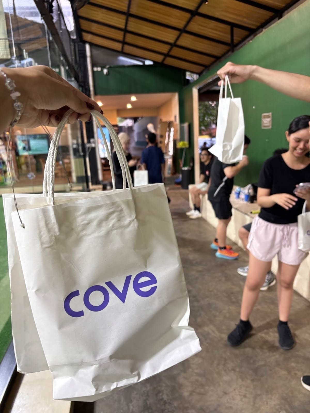 Menjelang akhir sesi, peserta beristirahat sambil menikmati minuman yang disediakan dan berbincang santai di pinggir lapangan.Beberapa peserta juga membawa pulang limited freebies dari Cove sebagai penutup manis dari sesi New Year Padel kali ini.